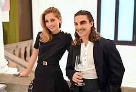 Презентация нового бренда Yudashkin в Особняке Спиридонова. Директор по развитию компании "Боско ди Чильеджи" Константин Андрикопулос (слева) и его супруга Ольга (справа) на презентации.