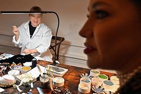Презентация нового бренда Yudashkin в Особняке Спиридонова. Швеи Дома моды Valentin Yudashkin демонстрируют мастерство ручной вышивки в специально подготовленной мастерской в рамках презентации.