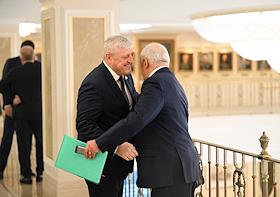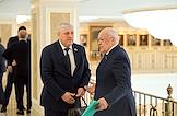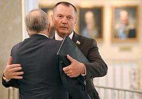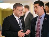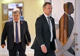 Заседание Совета Федерации (СФ) России. Представитель в СФ России от исполнительного органа государственной власти Псковской области Алексей Наумец (слева) и представитель от исполнительной власти Республики Северная Осетия - Алания Таймураз Мамсуров (справа) перед началом заседания.