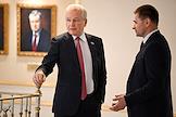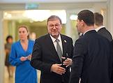 Заседание Совета Федерации (СФ) России. Представитель в СФ России от законодательного (представительного) органа государственной власти Камчатского края Валерий Пономарев (слева) перед началом заседания.