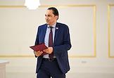 Заседание Совета Федерации (СФ) России. Представитель в СФ России от законодательного (представительного) органа государственной власти Липецкой области Максим Кавджарадзе перед началом заседания.