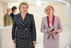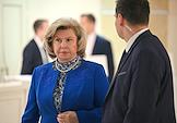 Заседание Совета Федерации (СФ) России. Уполномоченный по правам человека в России Татьяна Москалькова (в центре) перед началом заседания.