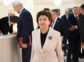 Заседание Совета Федерации (СФ) России. Представитель в СФ России от исполнительного органа государственной власти Республики Башкортостан Лилия Гумерова (слева) перед началом заседания.