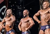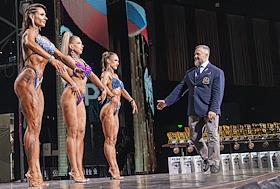 Всероссийские соревнования по бодибилдингу и фитнесу на сцене концертного зала "МТС Live Холл". Участники во время церемонии награждения.