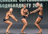 Всероссийские соревнования по бодибилдингу и фитнесу на сцене концертного зала "МТС Live Холл". Участники во время соревнований.