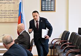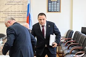 Заседание комитета по государственному строительству и законодательству в Государственной думе (ГД) России. Первый заместитель председателя комитета ГД России по государственному строительству и законодательству Даниил Бессарабов (в центре) во время заседания.