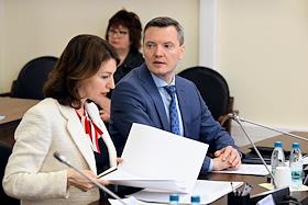 Заседание комитета по государственному строительству и законодательству в Государственной думе (ГД) России. Первые заместители председателя комитета ГД России по государственному строительству и законодательству Ирина Панькина (слева) и Даниил Бессарабов (справа) во время заседания.