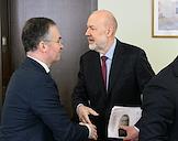 Заседание комитета по государственному строительству и законодательству в Государственной думе (ГД) России. Заместитель министра финансов России Иван Чебесков (слева) и председатель комитета ГД России по государственному строительству и законодательству Павел Крашенинников (справа) перед началом заседания.