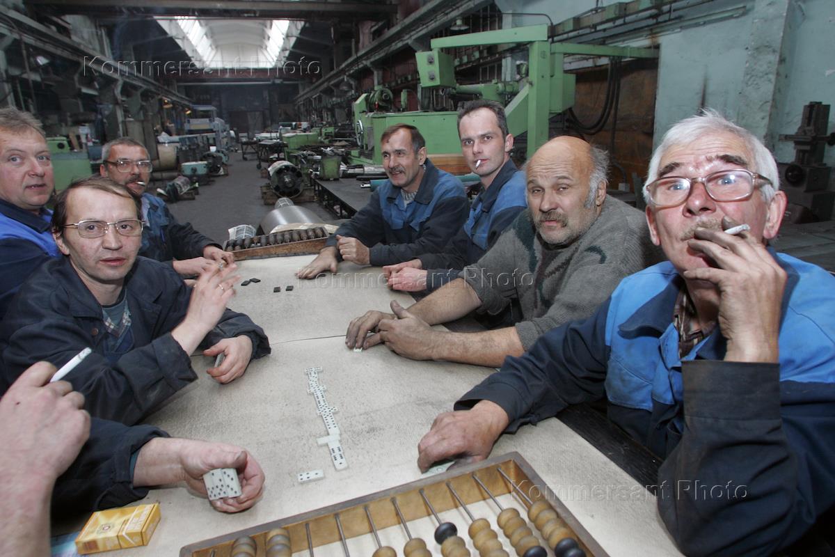Рабочие отдыхают после работы на спичечной фабрике "Маяк".