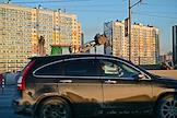 Виды Новосибирска. Жанровая фотография. Автомобиль на фоне жилых домов.