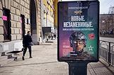 Виды Новосибирска. Жанровая фотография. Рекламный плакат о службе в войсках беспилотных систем России в центре города.