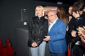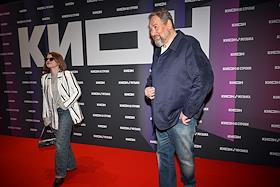 Празднование Дня рождения онлайн-кинотеатра "КИОН" в Театре на Цветном. Режиссер Сергей Филатов (слева) и актриса Анна Богомолова на праздновании.