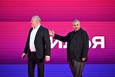 Празднование Дня рождения онлайн-кинотеатра "КИОН" в Театре на Цветном. Директор по производству контента KION Максим Филатов (слева) и креативный директор KION Илья Бурец на праздновании.