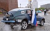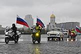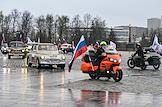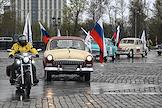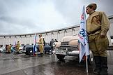 Акция "Автопробег Победы", организованная партией "Единая Россия", с участием ретроавтомобилей марки "Победа" и мототехники. Старт автопробега на площади Победителей в парке Победы.