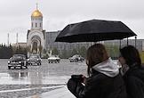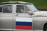 Акция "Автопробег Победы", организованная партией "Единая Россия", с участием ретроавтомобилей марки "Победа" и мототехники. Церемония возложения цветов и венков к Огню Памяти и Славы перед началом автопробега на площади Победителей в парке Победы.
