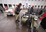 Акция "Автопробег Победы", организованная партией "Единая Россия", с участием ретроавтомобилей марки "Победа" и мототехники. Участники акции перед началом автопробега на площади Победителей в парке Победы.