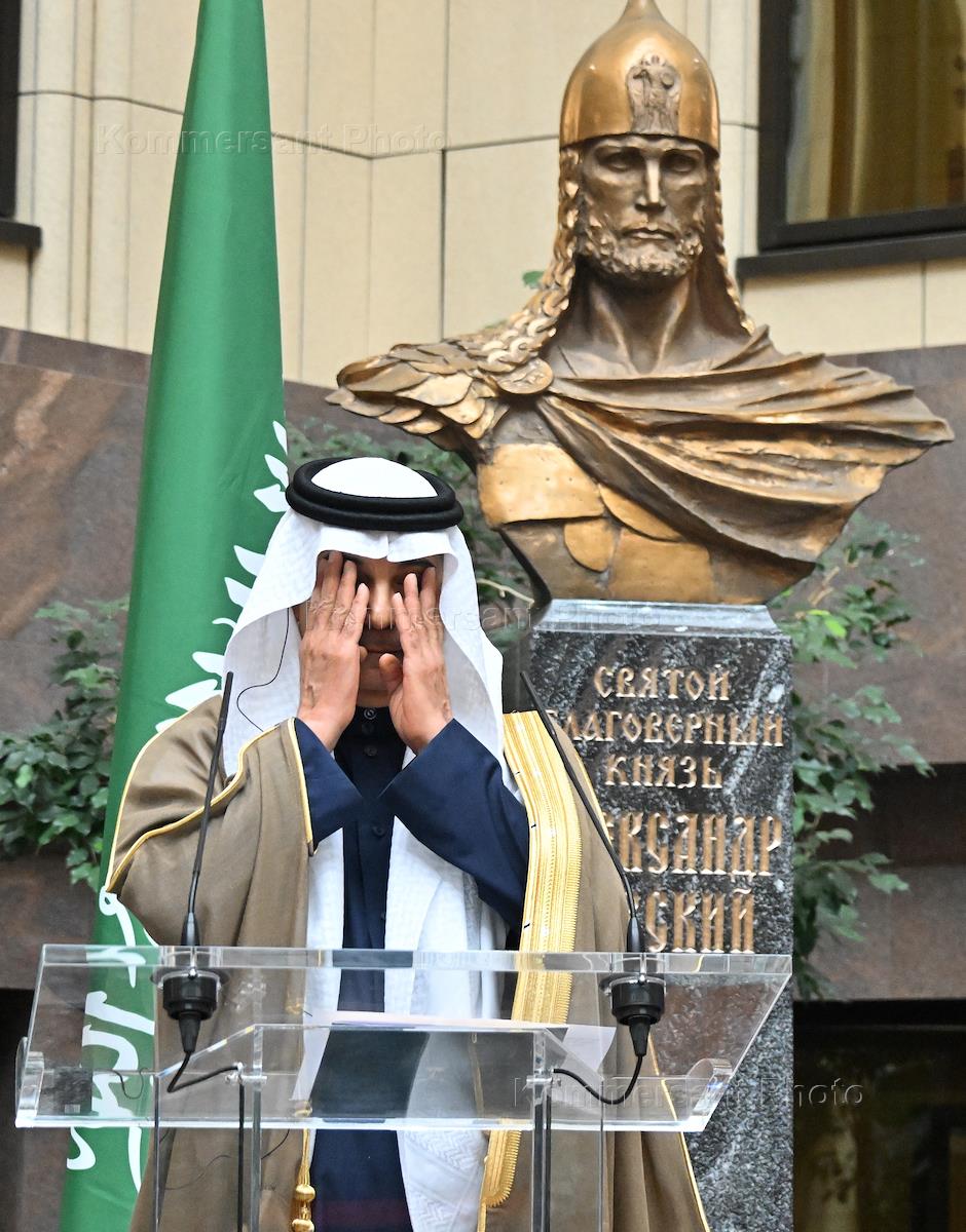 Церемония открытия выставки, посвященной 100-летию установления дипломатических отношений между Россией и Королевством Саудовская Аравия, в Министерстве иностранных дел (МИД) России. Посол Саудовской Аравии в России Сами Бен Мохаммед Аль-Садхан на церемонии.