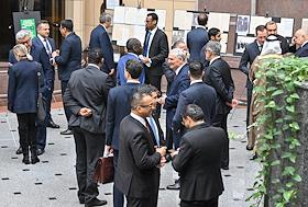 Церемония открытия выставки, посвященной 100-летию установления дипломатических отношений между Россией и Королевством Саудовская Аравия, в Министерстве иностранных дел (МИД) России. Заместитель министра иностранных дел России Георгий Борисенко (в центре) на церемонии.