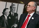 Фотограф Владимир Мусаэльян на церемонии открытия выставки "Генсек и фотограф. Выставка работ специального корреспондента ИТАР-ТАСС В.Г.Мусаэльяна к 100-летию Л.И.Брежнева". Выставка прошла в Государственном историческом музее.