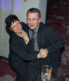 Международная бизнес-конференция компании "Росбизнесконсалтинг" Россия-Китай. Главный редактор журнала "FHM" Дмитрий Губин (справа) с обозреватель журнала "Тайм-Аут Санкт-Петербург" Тамара Иванова-Исаева (слева) танцуют на гала-ужине по случаю открытия конференции и концерте группы "Мумий Троль". Гала-ужин прошел в ресторане "Гранд Балрум".