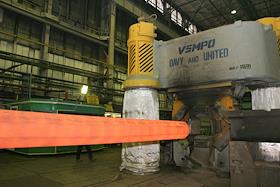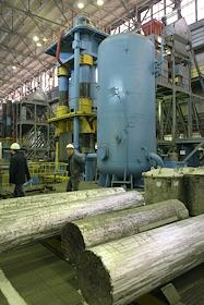 Производственный цех Верхне-Салдинского металлургического производственного объединения (ВСМПО). Раскаленная заготовка.