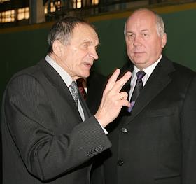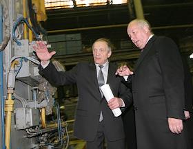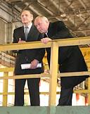 Генеральный директор ФГУП «Рособоронэкспорт» Сергей Чемезов (слева) и генеральный директор корпорации ВСМПО - АВИСМА Владислав Тетюхин (справа) во время ознакомительной экскурсии по цехам Верхне-Салдинского металлургического производственного объединения (ВСМПО).