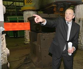 Генеральный директор ФГУП "Рособоронэкспорт" Сергей Чемезов во время ознакомительной экскурсии по цехам Верхне-Салдинского металлургического производственного объединения (ВСМПО).