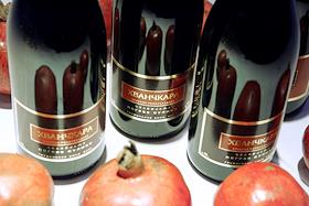 Бутылки с грузинскими винами "Саперави" и "Хванчкара" во время проведения Большого грузинского праздника на заводе "Арма".