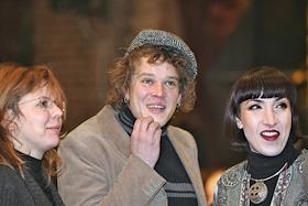 Телеведущая Фекла Толстая (слева), финский актер Вилле Хаапсало (в центре) и режиссер Тина Барклая (справа) на Большом грузинском празднике на заводе "Арма".