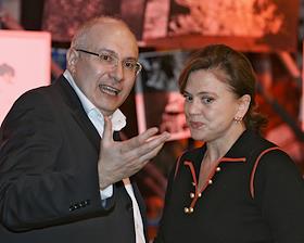 телеведущая Светлана Сорокина (слева) и президент Академии российского телевидения, телеведущий Владимир Познер (справа) на Большом грузинском празднике на заводе "Арма".