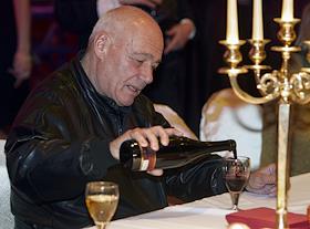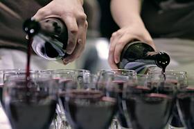 Жанровая фотография. Официанты наливают красное вино в бокалы во время большого грузинского праздника на заводе "Арма".