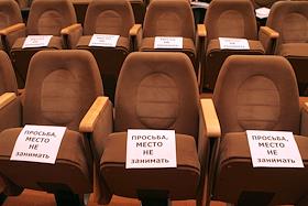 Открытие IV Международного нефтяного форума "Нефть России: настоящее и будущее" в "Президент-отеле". Пустые кресла с табличками "Просьба место не занимать".