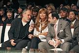 Председатель научного совета Института стран СНГ, политолог, председатель Комиссии Общественной палаты России по вопросам глобализма и национальной стратегии развития Андроник Мигранян (слева), председатель Попечительского Совета Фонда "Форум культуры и искусства Узбекистана", дочь президента Узбекистана Гульнара Каримова (в центре) и президент Евразийской медиа-группы Вартан Тоганян (справа) во время проведения fashion-проекта "Неделя дизайна и моды Style.uz".