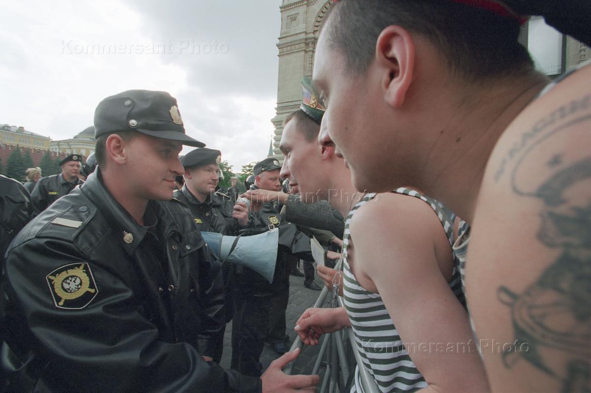 Драка между милиционерами и пограничниками на Красной площади во время празднования Дня пограничника.
