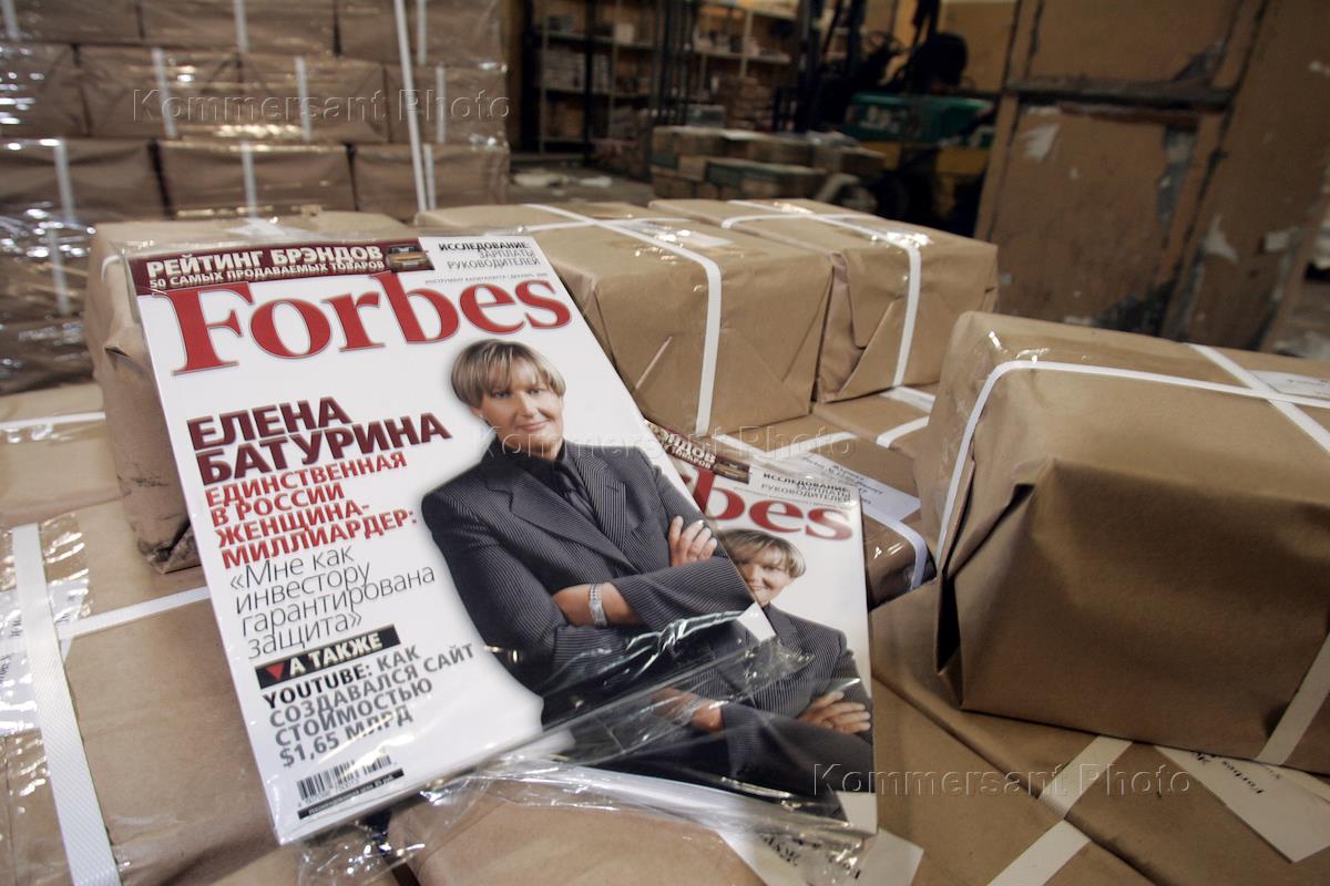 Обложка номера русской версии журнала "Форбс" за декабрь 2006 года. Портрет супруги мэра Москвы, предпринимателя Елены Батуриной и надпись "Единственная в России женщина миллиардер".