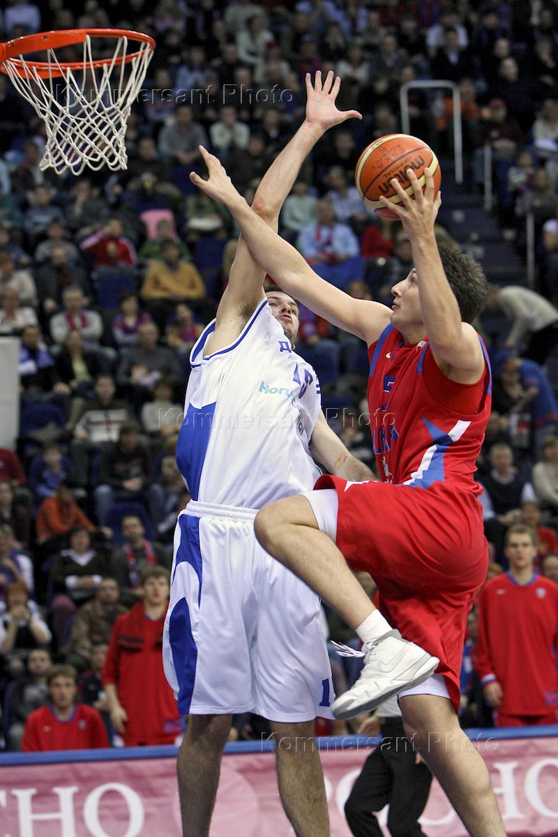 Суперлига по баскетболу. Баскетболист Никита Курбанов (справа) во время матча между командами "ЦСКА" - "Динамо" (75:56). Матч прошел в УСЗ "ЦСКА".