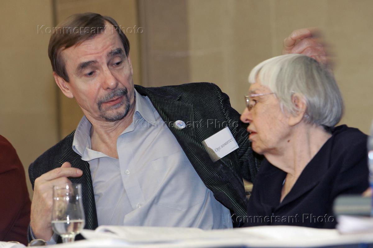 Председатель Московской Хельсинской группы Людмила Алексеева (слева) и экс-чемпион мира по шахматам, председатель "Комитета — 2008: свобода выбора" Гарри Каспаров (справа) во время Второго Всероссийского съезда в защиту прав человека (Второй Правозащитный съезд). Съезд прошел в гостинице "Космос".