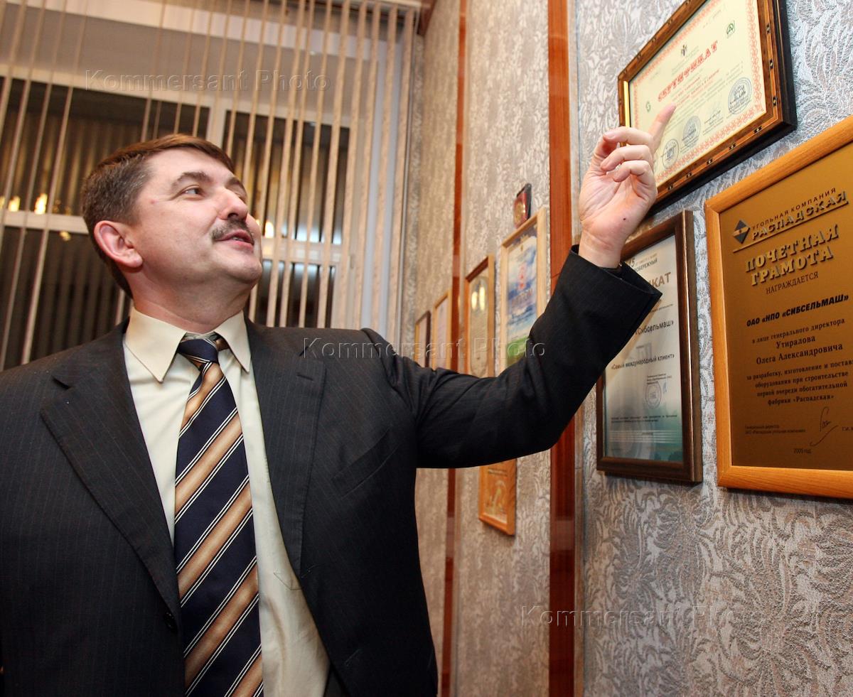 Генеральный директор ОАО "Научно–производственное объединение "Сибсельмаш" Олег Утиралов во время интервью в своем рабочем кабинете.