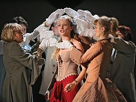 Актриса Мария Миронова (слева) в спектакле по пьесе Жан-Батиста Мольера "Тартюф" в постановке режиссера Владимира Мирзоева. Премьера спектакля состоялась в Московском театре "Ленком".