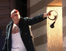 Актер Максим Суханов в спектакле по пьесе Жан-Батиста Мольера "Тартюф" в постановке режиссера Владимира Мирзоева. Премьера спектакля состоялась в Московском театре "Ленком".