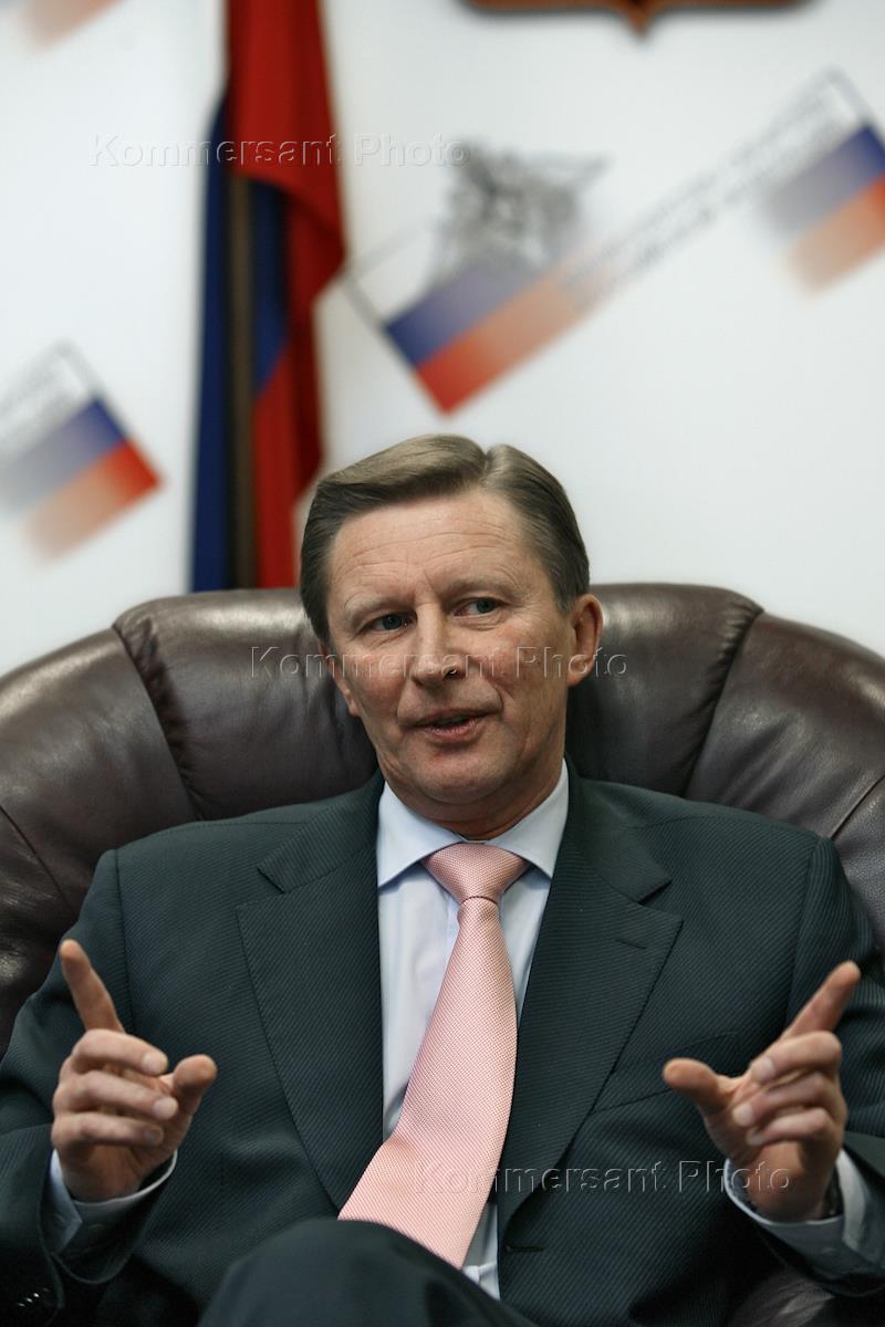 Министр обороны России Сергей Иванов во время интервью в здании Министерстве обороны России.