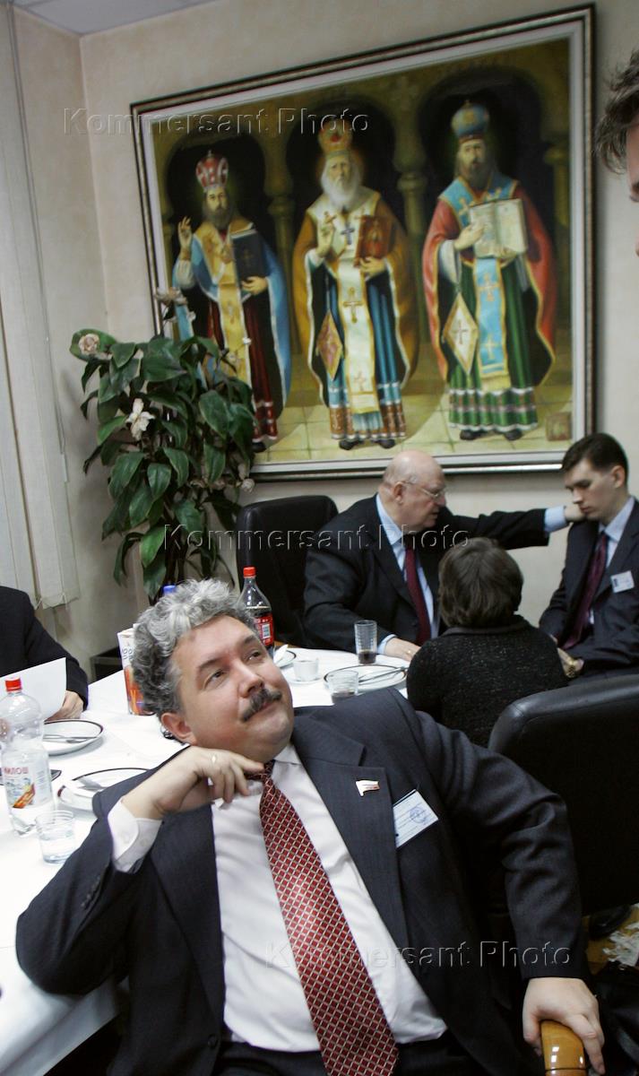 Парламентские выборы в Сербии. Заместитель председателя Государственной Думы России, лидер партии национального возрождения "Народная воля - Социалистическая единая партия России" Сергей Бабурин в предвыборном штабе Социалистической партии Сербии.