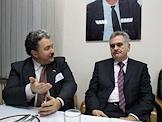 Парламентские выборы в Сербии. Заместитель председателя Государственной Думы России, лидер партии национального возрождения "Народная воля - Социалистическая единая партия России" Сергей Бабурин (слева) в предвыборном штабе Социалистической партии Сербии.