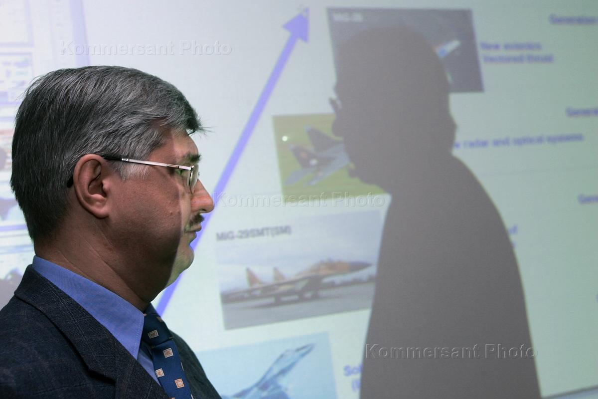 Генеральный конструктор Российской самолетостроительной корпорации (РСК) "МиГ" Владимир Барковский во время официальной презентации нового палубного самолета "МиГ-29К" для военно-морских сил Индии. Презентация прошла на аэродроме имени Громова.