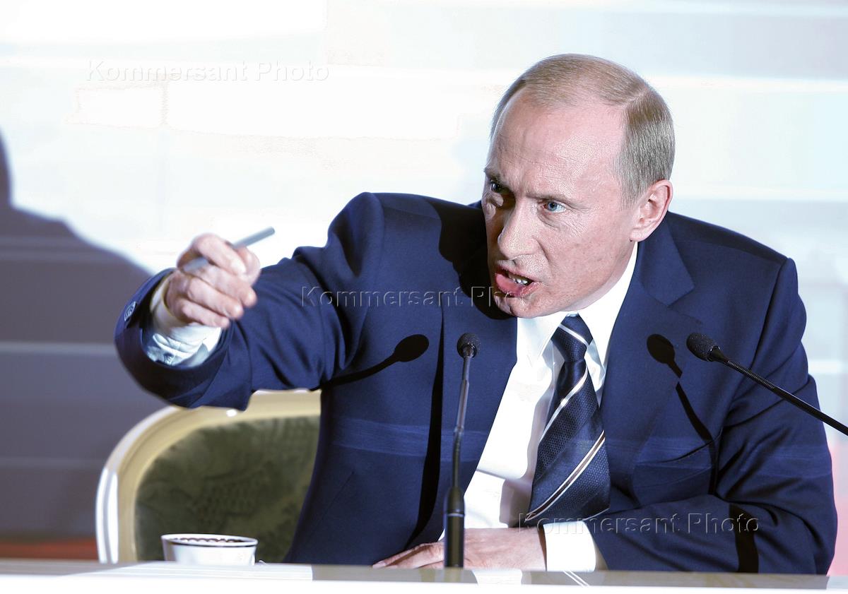 Президент России Владимир Путин на пресс-конференции для российских и иностранных журналистов. Пресс-конференция прошла в Круглом зале Кремля. Путин Владимир, Президент России