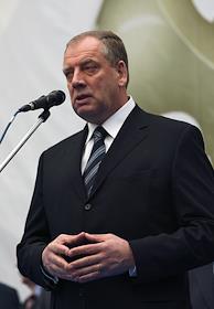 Представитель в Совете Федерации (СФ) России от Курганской областной Думы, заместитель Председателя Комитета Совета Федерации по аграрно-продовольственной политике Сергей Лисовский на церемонии открытия VI Международного форума "Мясная индустрия 2007" и V юбилейного Международного форума "Молочная индустрия 2007" в "Гостином дворе".