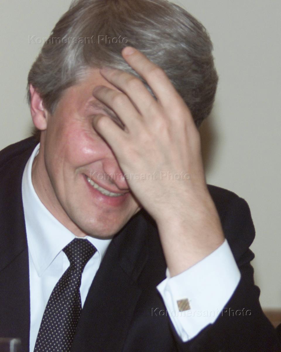 Представитель банка Менатеп Сергей Середа (слева), генеральный директор МФО Менатеп Олег Ашуров (в центре) и председатель совета директоров МФО Менатеп Платон Лебедев после пресс-конференции "Банк Менатеп. История банкротства. Миф или реальность".