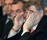 Руководитель Федерального агентства по лесному хозяйству (ФАЛХ) (Рослесхоз) МПР России Валерий Рощупкин (слева) и министр природных ресурсов (МПР) России Юрий Трутнев (справа) на Первом заседании лесной коллегии, посвященном проблемам реализации положений новой редакции лесного кодекса России. Заседание прошло в "Президент-отеле".