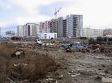 Виды города Атырау. Строительство жилых домов у пустыря.