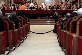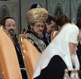 Патриарх Московский и всея Руси Алексий II (справа), главный раввин России Адольф Шаевич (слева) и верховный муфтий России и европейских стран СНГ Талгат Таджуддин (в центре) на церемонии открытия XI Всемирного Русского Народного собора в Зале Церковных Соборов Храма Христа Спасителя.